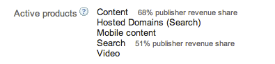 For displaying ads with AdSense for content, publishers receive 68% of the revenue recognized by Google in connection with the service. For AdSense for search, publishers receive 51% of the revenue recognized by Google. These percentages are consistent, regardless of a publisher's geographic location, and are not in any way averaged between publishers. We don't disclose the revenue share for other AdSense products; the revenue share varies for other products due to different costs of developing and supporting these products.
